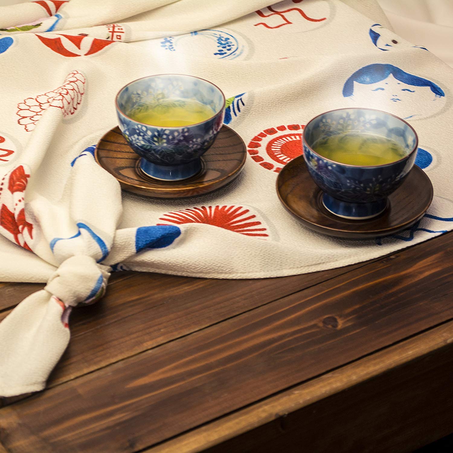 朝倉染布 風呂敷 - 約96×96cm 朝倉染布 超撥水風呂敷ながれ ちりめん 豆皿